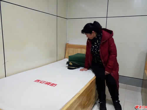 袁彩文坐在兒子的床鋪上,靜靜感受兒子的氣息。
