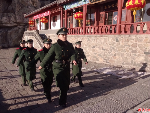 零點時分,泰山山下響起爆竹聲聲,人們在歡呼中迎接新的一年,戰士們聽著碧霞祠的鐘聲,迎來了新年。