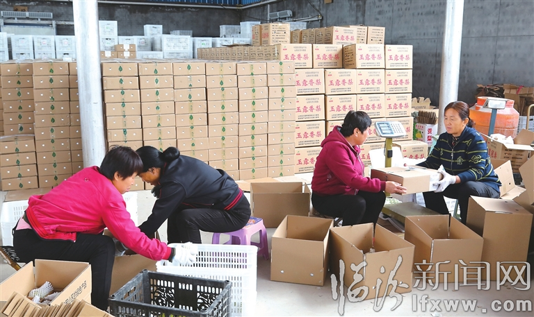 汾西縣高寒農牧專業合作社社員在包裝農產品。記者 攝