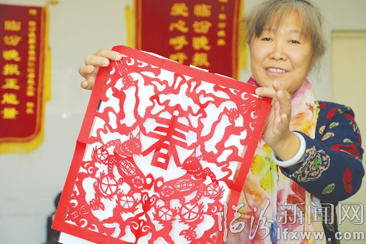 “我從小就跟著母親學剪紙,鄰居家一有喜事就讓母親幫忙剪喜字,后來母親上了年紀,眼花了,這剪喜字的活兒就落在我身上……”今年58歲的韓麗君是我市鐵路部門的一名退休職工,現在,她不僅自己搞剪紙創作,還是堯都區老年大學的剪紙帶頭人。在今年的旅發大會期間,她帶領堯都區老年大學的學員們,創作了多幅剪紙作品,并把剪紙和模特走秀相結合,當模特們披上各種圖案的剪紙作品,跟著音樂有節拍地表演,賺足了大伙兒的眼球,也給旅發大會增添了一道亮麗風景。