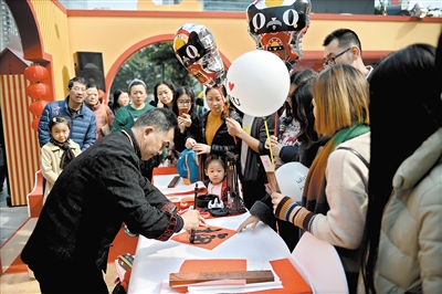 正佳廣場天貓年貨大街可領(lǐng)取春聯(lián),吸引了不少街坊。