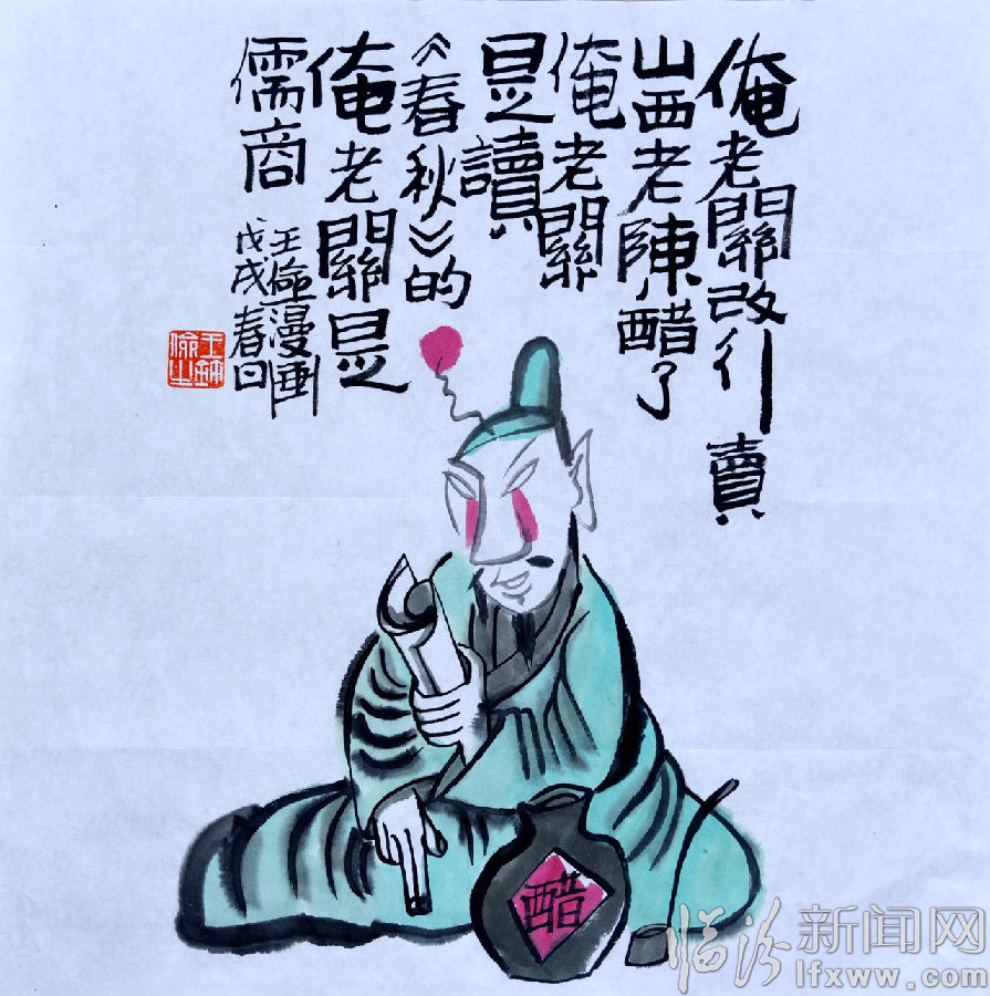 臨汾新聞網訊 4月22日,助力2018山西旅發大會在臨汾召開百項活動之一,百名畫家畫關公"老關家肘子杯"首屆全國水墨漫畫大獎賽獎項評出。姜末創作的《忠孝兩全圖》獲一等獎,劉曉東創作的《忠義關云長》、張靜創作的《關公戰秦瓊》獲二等獎,卞增年創作的《正邪勢不兩立》、王儉創作的《關老爺賣醋圖》、王祎斐創作的《關云長》獲三等獎。還有十件作品獲優秀獎。