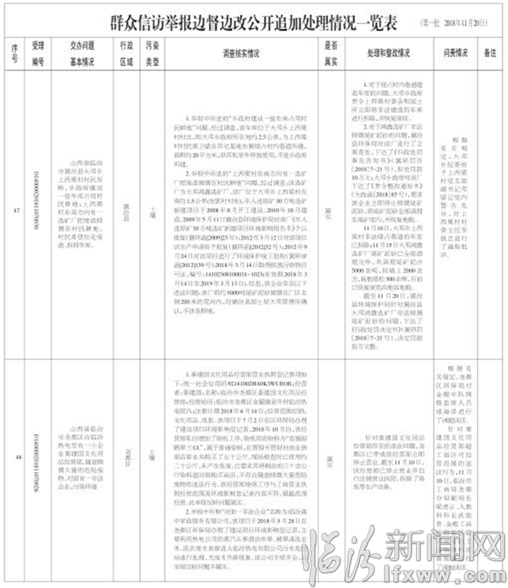 臨汾市關于中央生態環境保護督察“回頭看”交辦群眾信訪舉報問題邊督邊改情況通報