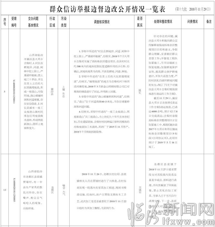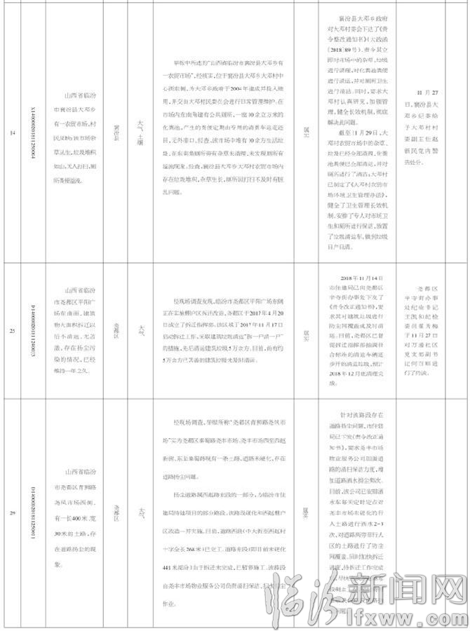 臨汾市關于中央生態環境保護督察“回頭看”交辦群眾信訪舉報問題邊督邊改情況通報