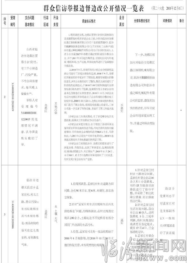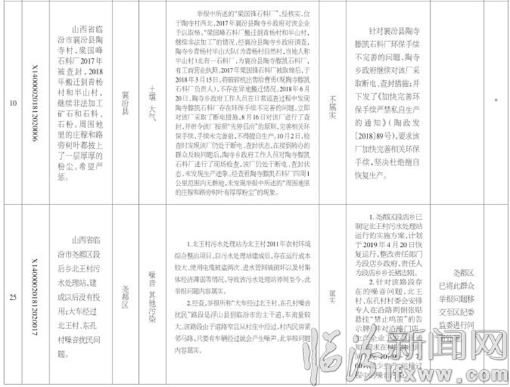 臨汾市關于中央生態環境保護督察“回頭看”交辦群眾信訪舉報問題邊督邊改情況通報