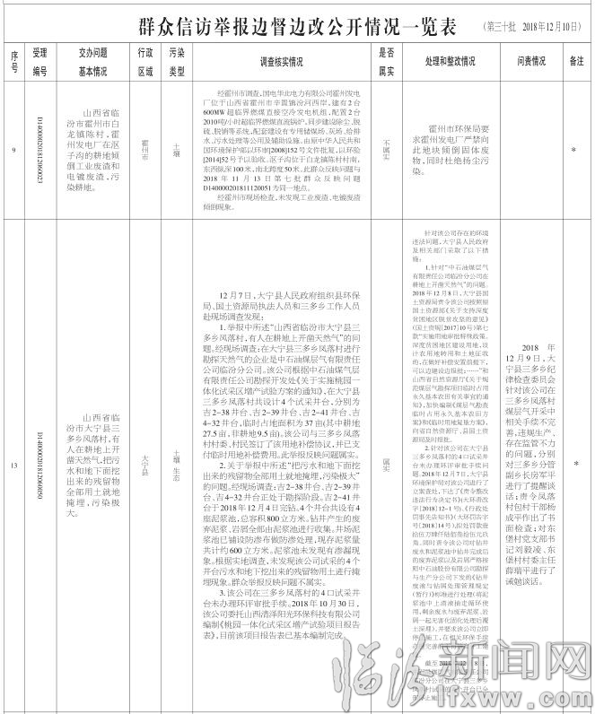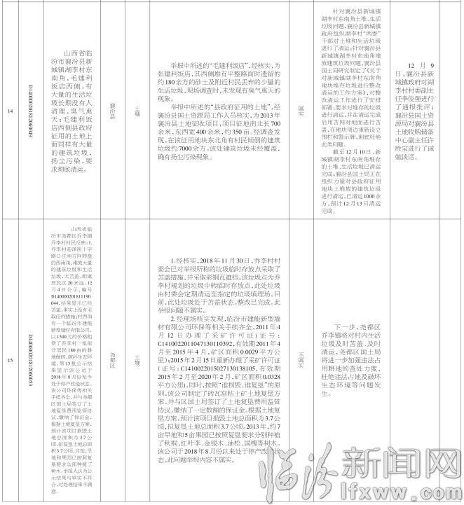 臨汾市關于中央生態環境保護督察“回頭看”交辦群眾信訪舉報問題邊督邊改情況通報