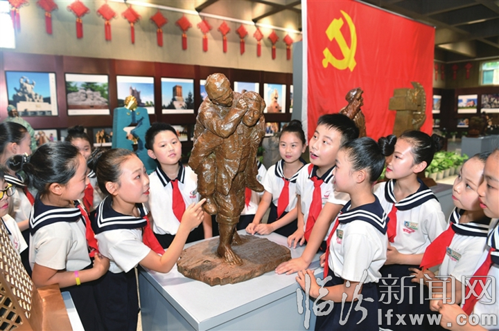 圖③ 堯都區西關小學學生在市區古城公園雕塑藝術館參觀“不忘初心、牢記使命”紅色雕塑展。