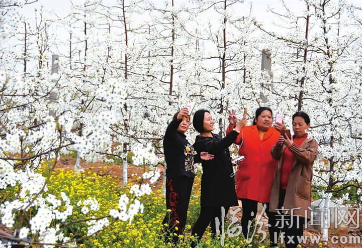 前些天,梨花競相開放,她收到氣象預報夜里有降溫,雖然合作社當晚采取了煙霧防寒措施,可她還是放心不下,每隔一小時看一回手機,只要預報顯示氣溫沒有降到“零下”,她再睡覺。就這樣持續了一晚上,天蒙蒙亮,賈玉蘭顧不上洗漱,一股腦快步跑向地里,看著滿園的梨花安然開放,她含淚笑了。