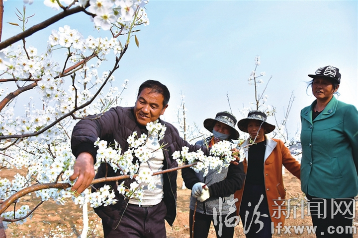 4月是梨園最忙的時候,梨樹拉枝、刻芽、疏花、疏果、修剪等農活兒正逐步開展。果園生產存在勞動密集型、輕體力活、技能活為主的特點,對肢體殘疾者來說,正是很好的就業選擇。