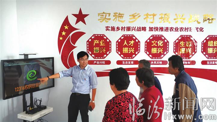 走進益農信息社,“實施鄉村振興戰略,加快推進農業農村現代化” 幾個紅色大字熠熠生輝,旁邊有一臺顯示屏,王斌向村民們興致勃勃地講解道:“只要點開網站,在上面發布信息,你的產品就能銷往全國各地……”