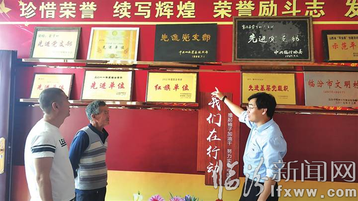 “行,待會就去。”旁邊的村民紛紛響應,蹲在一旁的老支書露出了滿意的笑容。跟隨王斌的腳步,記者與村民、老支書走進新改造的黨群服務中心。在會議室墻面上,讓人眼前一亮的是“珍惜榮譽,續寫輝煌”一行大字下擺放著兩排榮譽獎牌,最中間的是1986年省委組織部頒發的“先進黨支部”獎牌。