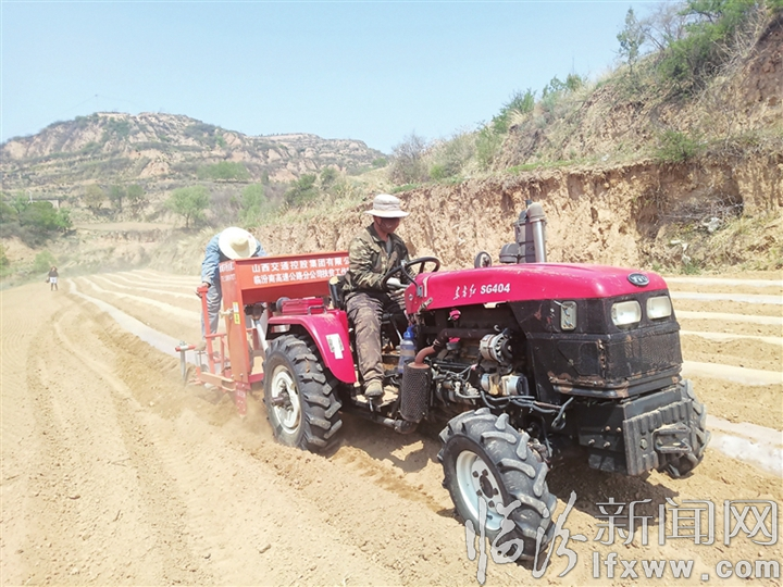 站在南溝底村的山坡上向下俯瞰,一塊塊泛著白色亮光的土地上,不少村民正在田里栽種紅薯苗。在窯鋪村的塊塊農(nóng)田里,給窯鋪村提供無(wú)償使用的紅薯起壟覆膜機(jī)正在駕駛員的操作下鋪就一條條銀色的“致富路”。