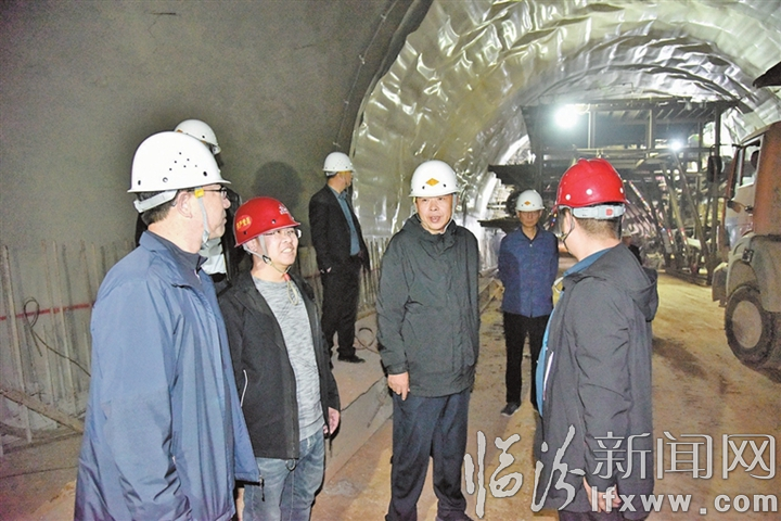圖為王志華(右三)在調(diào)研安全生產(chǎn)。記者 攝