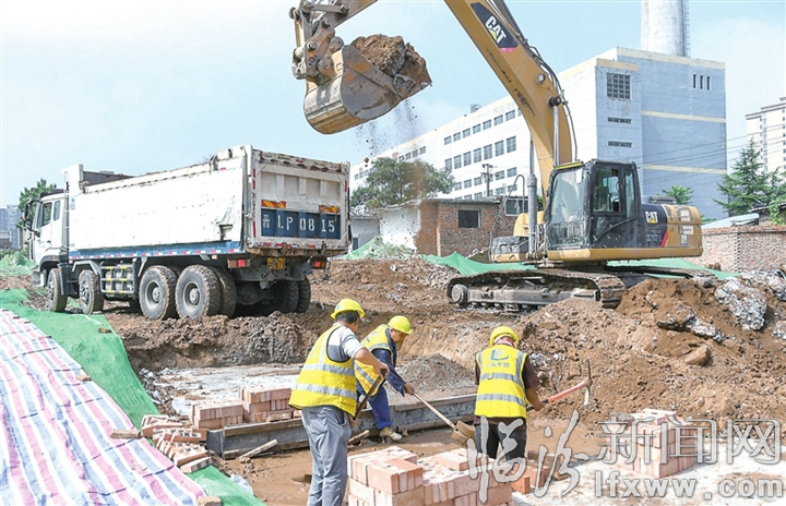 臨汾新聞網訊 近日,工人們在市區中大街南延工程施工工地緊張作業。