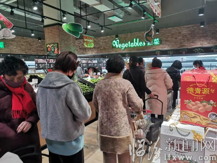 在大豐蔬鮮生活超市五洲國際廣場店選購蔬菜水果的市民。