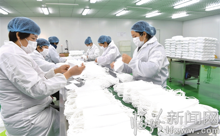 臨汾新聞網訊 新冠肺炎疫情發生以來,山西健康動力醫療科技有限公司曲沃公司和曲沃李時珍醫藥科技有限公司在曲沃縣委、縣政府積極協調推動下,從廣東、山東等地訂購了5條醫用外科口罩和醫用防護口罩(N95)生產線,全面投產后,日產量可達20萬只。截至目前,已有兩條生產線完成安裝調試,其中1條一次性全自動口罩生產線已進入試生產階段,1條N95半自動口罩生產線進入試生產最后階段。圖為工作人員正在把生產出來的口罩進行分裝。
