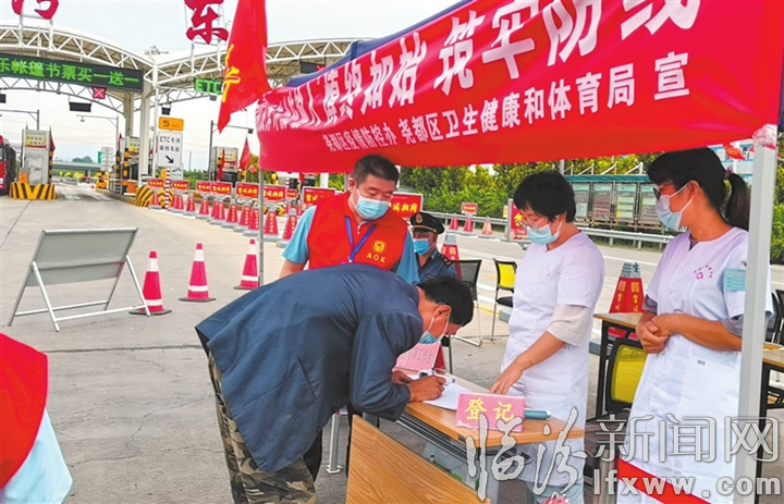 從8月9日起,市翱翔志愿服務隊的志愿者們分別在臨汾高速口、臨汾東高速口、臨汾南高速口、臨汾火車站配合防疫人員做志愿引導等工作,助力筑牢全民免疫屏障。圖為8月22日,志愿者在臨汾東高速口開展服務。