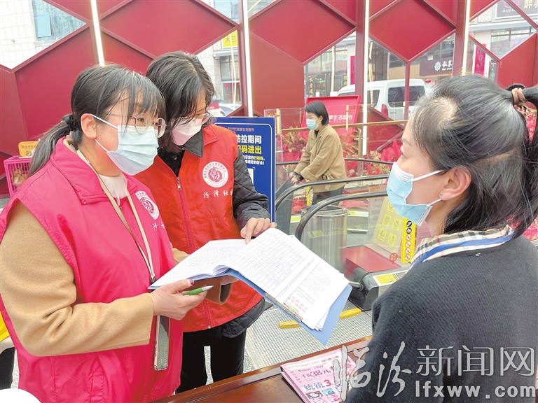 臨汾新聞網訊 近期,堯都區水塔街辦事處汾澤社區進一步加強對轄區小區、門店及人員密集場所的防控巡查,強化對外來人員及車輛的登記、排查、管控力度,全力構筑群防群控嚴密防線。圖為社區工作人員在轄區超市檢查疫情防控臺賬。記者 攝