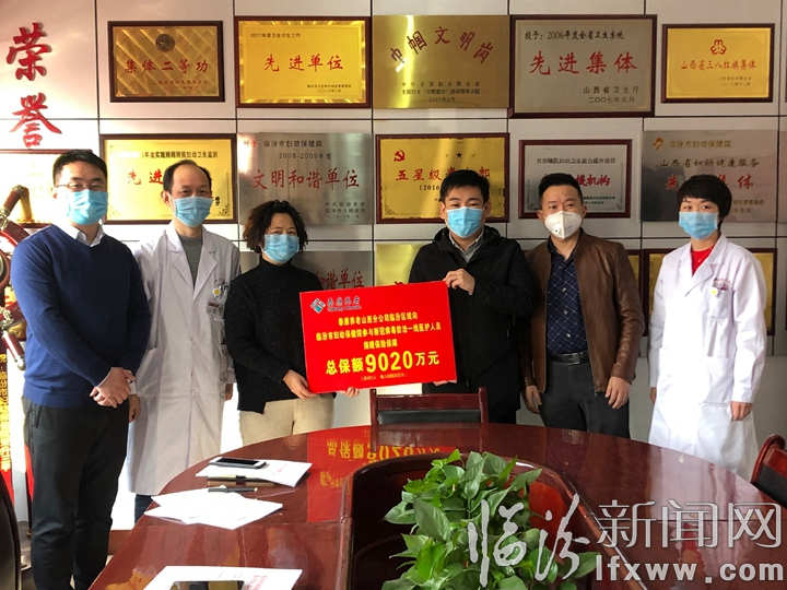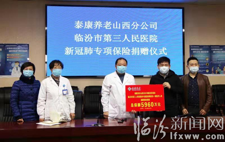 泰康保險山西分公司于1月22日向臨汾一線的醫護人員捐贈20萬元保額的保險,保障期為一年。