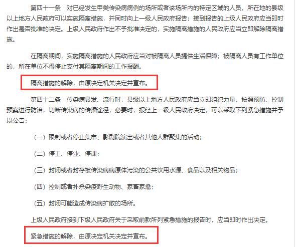 《中華人民共和國傳染病防治法(2013年修正本)》中關于“解除隔離措施”“解除緊急措施”的規定