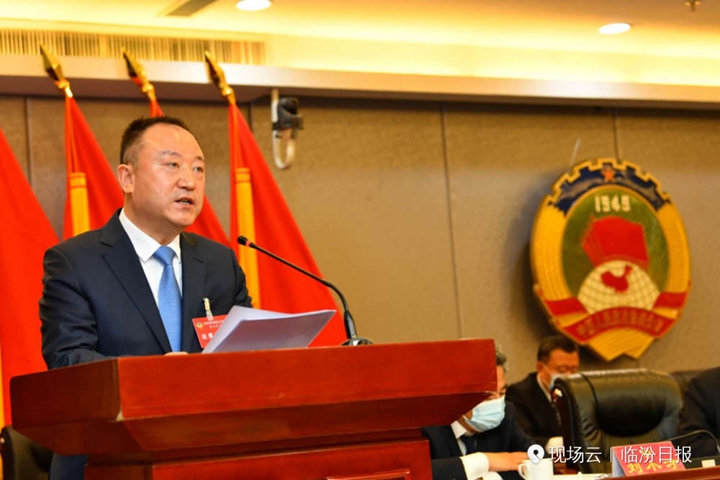 張建平代表政協第四屆臨汾市委員會常務委員會向大會作工作報告。