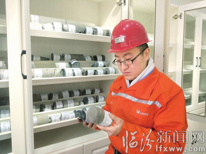 圖為周鵬在觀察從礦井深處采集的巖層樣本。