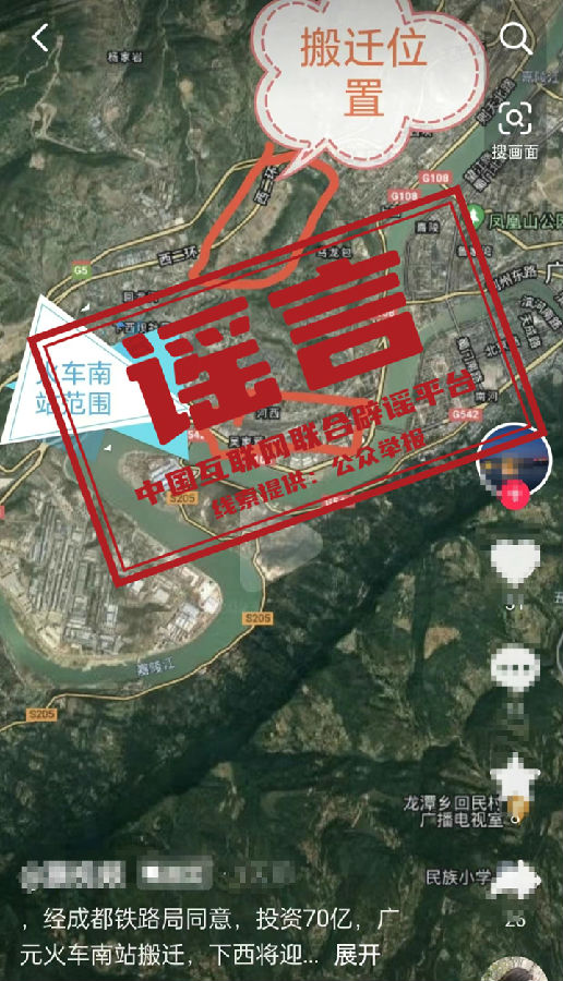 真相:11月13日,有網民在某網絡平臺發布視頻,稱經過成都鐵路局同意,將投資70億元搬遷廣元南站,引發市民關注。14日,成都鐵路局廣元車務段相關負責人在接受記者采訪時表示,該條信息屬于謠言。廣元南站是中國鐵路成都局集團有限公司管轄的貨運編組一等站,是四川地級市中唯一的編組站,也是四川省內除成都市貨運編組站外最大的貨運編組樞紐站。對于搬遷問題,四川省發改委調研組曾經來過現場進行考察,但由于牽涉面廣,搬遷難度較大,廣元南站是否搬遷還未正式確定。網上所發布的廣元南站將要搬遷的信息多為不良房地產開發商或者中介商為了炒房而發布的不實信息。(來源:@廣元日報看廣元)