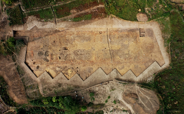 青關(guān)山一號大型建筑遺跡平面為長方形,呈西北—東南走向,長逾65米,寬近16米,面積超過1000平方米。這也是迄今發(fā)現(xiàn)的商代最大的單體建筑之一。