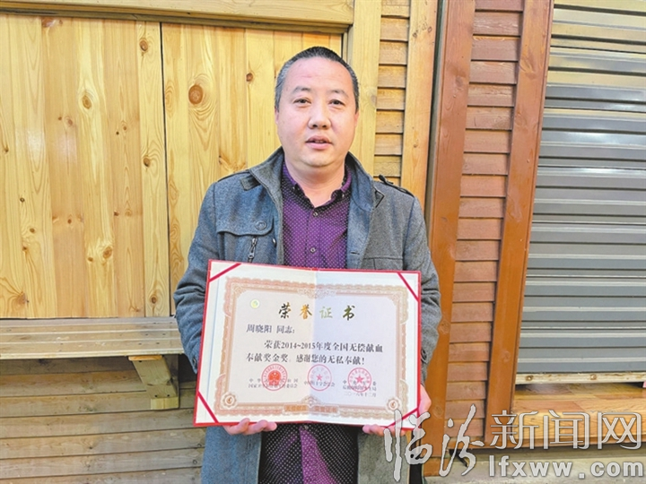 周曉陽不僅做了,還堅持做下去了。他起初是每隔半年捐獻一次全血,后來又“掐”著點每月捐獻兩次血小板,無論刮風下雨還是嚴寒酷暑,從無間斷。厚厚一摞獻血證是他最寶貴的“獎章”,“看著自己的血液充滿血袋,心中油然而生一種成就感和自豪感。能夠幫助他人、奉獻社會,就是最幸福、快樂的事兒。”