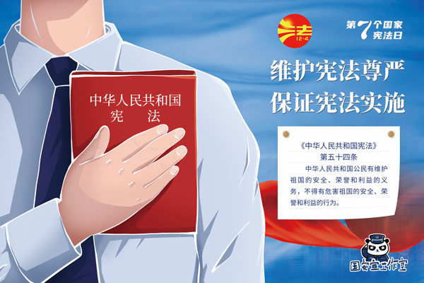 習近平總書記強調要堅持依憲治國,依憲執政。堅持依憲治國、依憲執政,就包括堅持憲法確定的中國共產黨領導地位不動搖,堅持憲法確定的人民民主專政的國體和人民代表大會制度的政體不動搖。憲法第五十四條明確規定,中華人民共和國公民有維護祖國的安全、榮譽和利益的義務,不得有危害祖國的安全、榮譽和利益的行為。政權安全和制度安全是政治安全的核心。政治安全作為國家安全的根本,是攸關黨和國家安危的頭等大事。