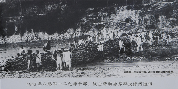1942年八路軍一二九師干部、戰(zhàn)士幫助赤岸群眾修河造田。圖片由邯鄲日報社提供