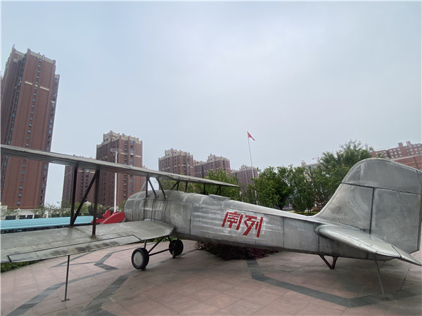 鄂豫皖革命紀念館廣場上陳列的“列寧號“飛機復制品。圖片由信陽日報全媒體記者 馬迎春 攝