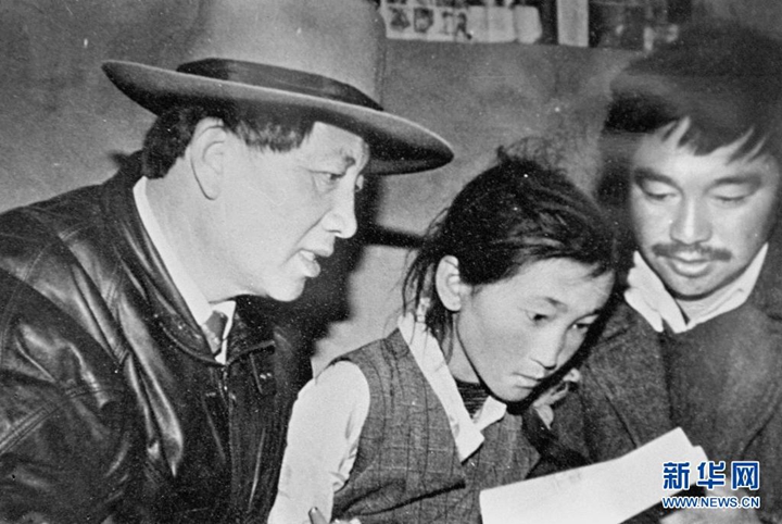 在西藏工作期間,孔繁森(左)在輔導藏族兒童讀書(資料照片)。新華社發