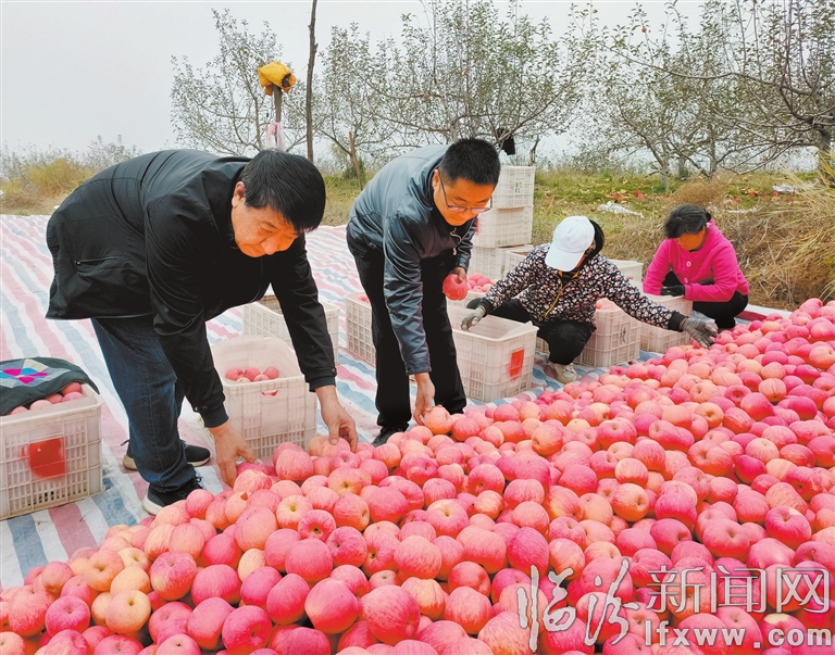 連日來,國家電網大寧縣供電公司駐大寧縣太古鎮坦達村工作隊展開行動,幫助坦達村果農搶收蘋果,減少災害造成的損失。 馮振興 攝