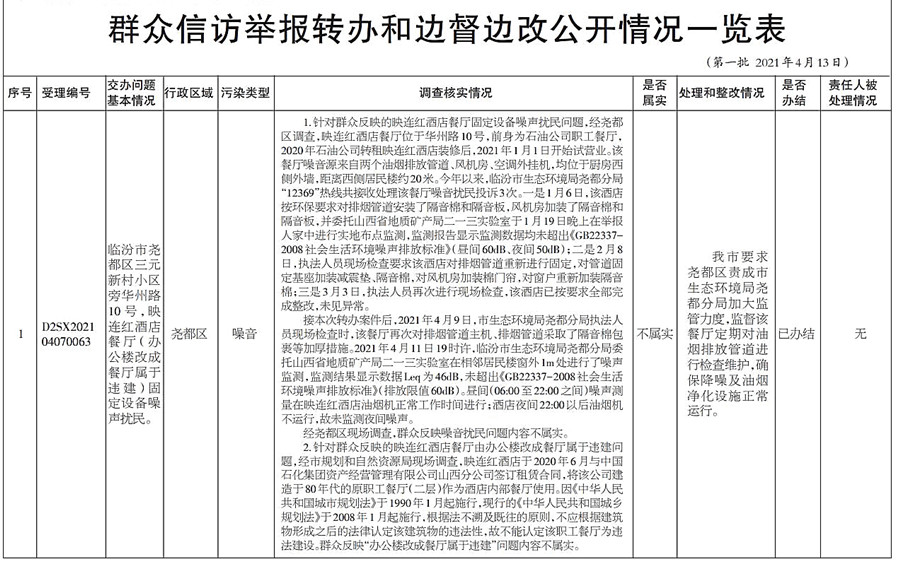 下一篇: 臨汾群眾信訪舉報轉辦和邊督邊改公開情況一覽表(第二批)
