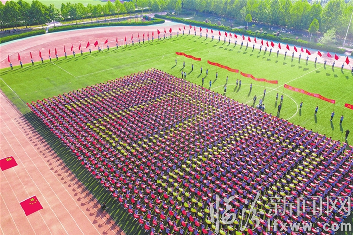 臨汾新聞網訊 近日,臨汾一中高二年級舉辦慶祝中國共產黨成立一百周年團體合唱活動。全體高二學生,齊聲高歌并配以扇子圖形,合唱曲目通過朗誦詞串聯方式謳歌黨的光輝歷程,借此抒發愛國愛黨之情。圖為學生用扇子組成一百周年字樣。