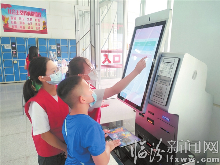 和王霖濤一樣,不少學生積極參加到該館的志愿服務活動中。他們當中,既有大學生,也有年僅7歲的小學生。在館內的辦證窗口、青少年閱覽室、自習室等區域,都能看到他們忙碌的身影。這個暑假,他們在市圖書館搭建的實踐平臺上,收獲了成長、增長了見識,也為書香臨汾建設貢獻了青春力量,成為圖書館一道靚麗的“紅色風景線”。