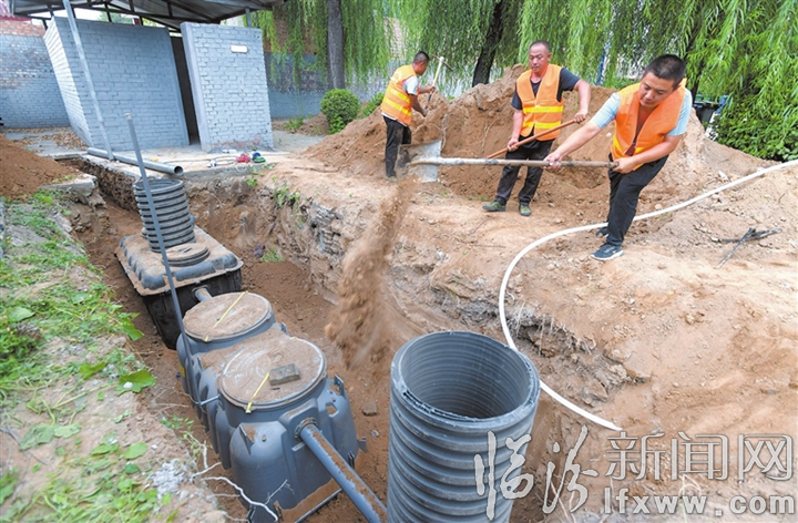 臨汾新聞網(wǎng)訊 8月22日,在洪洞縣甘亭鎮(zhèn)南團(tuán)結(jié)村,臨汾市農(nóng)村集體經(jīng)濟(jì)水生態(tài)科技有限公司的施工人員在填埋污水處理設(shè)備。南團(tuán)結(jié)村污水治理項目作為我市農(nóng)村集體經(jīng)濟(jì)重點(diǎn)龍頭項目,為全村226戶實行“三水合一”(餐廚廢水、洗滌廢水和廁所廢水)污水治理,將農(nóng)村人居環(huán)境改善和農(nóng)村生態(tài)環(huán)境治理落到實處。