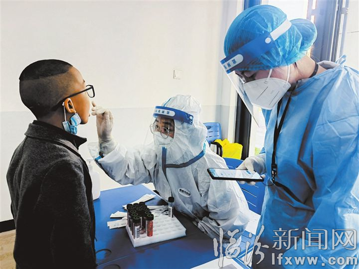 臨汾新聞網訊 10月10日下午,臨汾一中第一附屬學校二年級的孩子們正在進行核酸檢測。該校認真落實市衛健委每天對中小學生核酸抽檢20%的要求,為校園筑起一道牢固的生命安全防線。