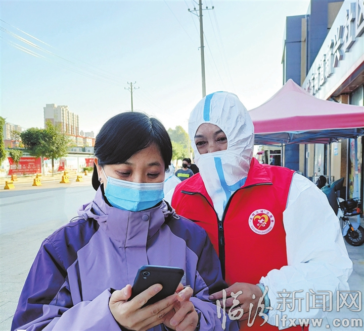 臨汾新聞網訊“請大家戴好口罩,間隔一米距離,不要擁擠,提前準備好二維碼……”10月18日8時,市區新興社區藍山國際小區核酸采集現場,前來做核酸采集的居民排起了“長龍”,防護服外套著紅馬甲的李雪云一遍又一遍地提醒大家做好防護。