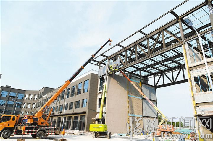 臨汾新聞網(wǎng)訊 近日,施工人員在晉南國際農(nóng)產(chǎn)品物流園項目建設(shè)工地施工。該項目是集蔬菜、水果、糧油等十大主要業(yè)態(tài)和電子商務(wù)、檢測檢疫、電子化結(jié)算等十大配套于一體的一站式大型農(nóng)副產(chǎn)品交易中心,建成后可入住經(jīng)營戶3000多家,帶動15000余人就業(yè)。