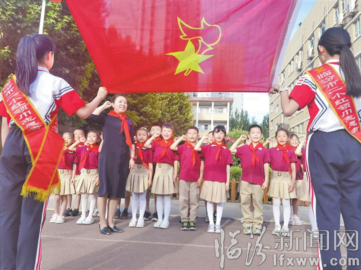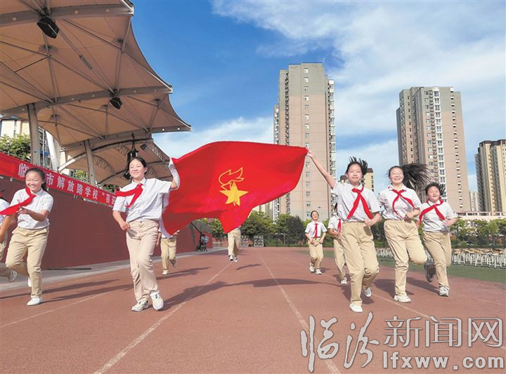 堯都區解放路學校開展了豐富多彩的慶“六一”活動,同學們傳隊旗、唱隊歌,沉浸在歡樂的節日氣氛中。圖為活動現場。本報記者 攝