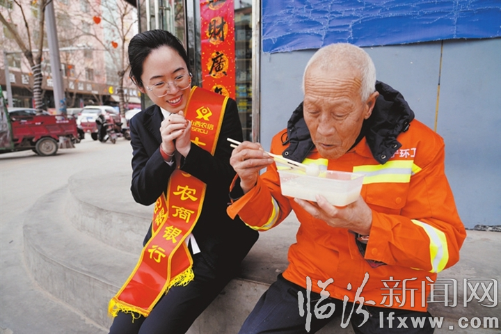 圖為大寧農商行為環衛工人送上熱氣騰騰的元宵