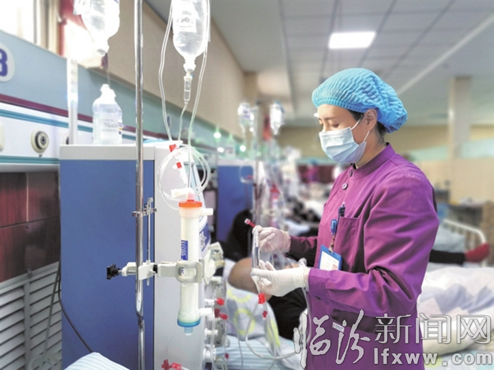 ▲正月初二,市第三人民醫院透析室護理人員為患者做透析