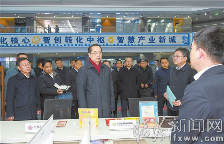 市委書記李云峰在堯都高新區云商產業園調研園區入駐企業運行和信創產業發展情況。記者 閆銳鵬 攝