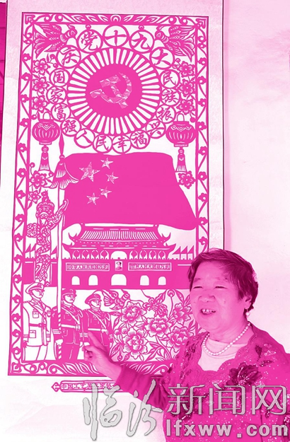 臨汾新聞網訊 日前,剪紙藝人解白蓮創作了《喜迎十九大》剪紙作品,迎接黨的十九大勝利召開。
