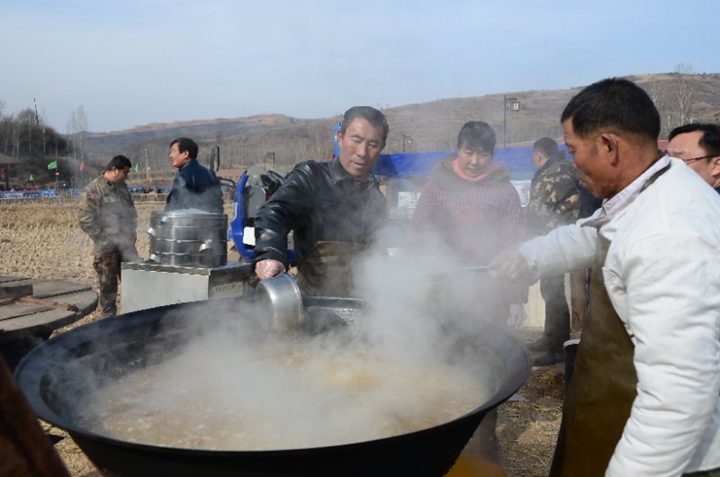 在車道村的小廣場上,一大早就支起了幾口大鍋,村民們宰羊、熬羊湯,翻滾的熱湯,消融了冬日的寒冷,氣氛熱鬧,幸福滿滿。