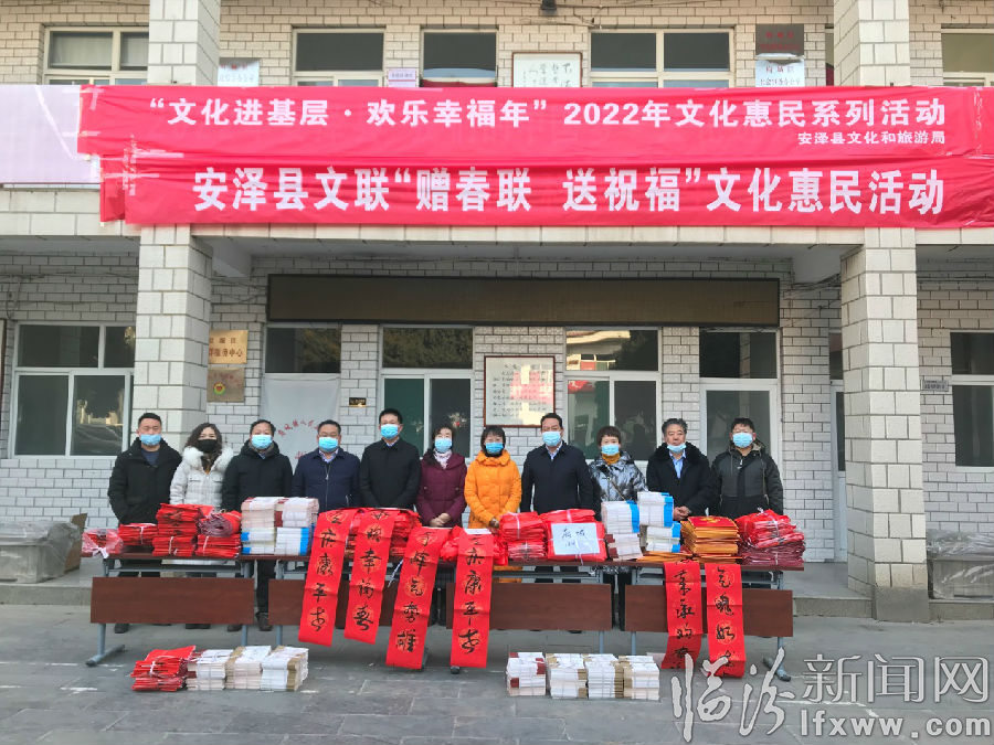 臨汾新聞網訊 近日,為深入踐行“我為群眾辦實事”活動,迎接新年的到來,安澤縣文聯在全縣各鄉鎮和社區組織開展“贈春聯、送祝福”文化惠民活動,累計贈送春聯10000幅,為廣大群眾送去一份關懷和溫暖,送上新春祝福,營造了歡樂祥和的節日氛圍。(通訊員 王麗)