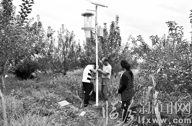 云居村果農正在果園安裝殺蟲燈。侯耀強 攝