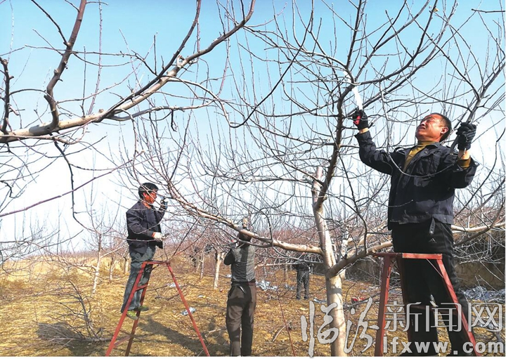 臨汾新聞網訊 近日,大寧縣太古鄉坦達村的果樹大戶景立平,為了讓自家承包的30畝果園提質增效、增加收入,他從吉縣文城鄉柏樹村請來果樹修剪專家葛紅新對果樹進行修剪、涂藥整枝。期間,該專家帶領技術團隊,到當地果園傳授修剪技術,受到了果農的一致好評。圖為葛紅新技術團隊正在修剪樹枝。(馮振興)